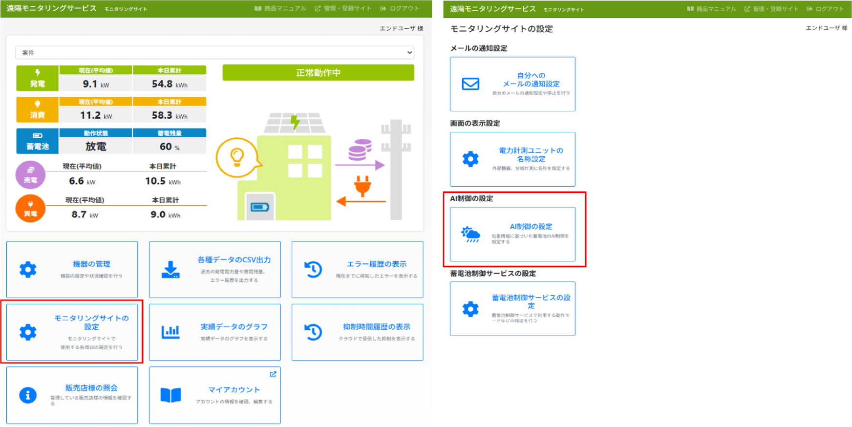 SMART STAR プラットフォーム:「AIモード」として稼働しているため、蓄電池の個別のモード変更はいたしません。